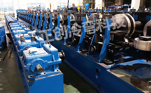 流程如下:開(kāi)卷機(jī)(人工上料)-導(dǎo)向進(jìn)料-冷彎成型主機(jī)-成型后尺寸校正-自動(dòng)焊接-定尺跟蹤自動(dòng)飛鋸切割-成品?托料-合格產(chǎn)品